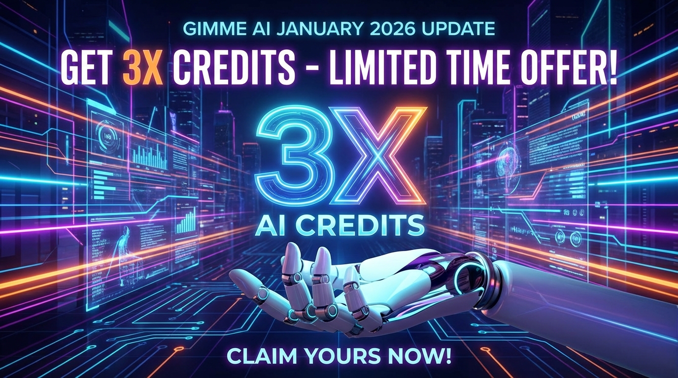 重磅消息!Gimme AI 推出超级优惠活动,所有充值均可获得三倍积分。同时上线全新 image to prompt 功能、优化提示词展馆、SEO友好URL等多项更新。